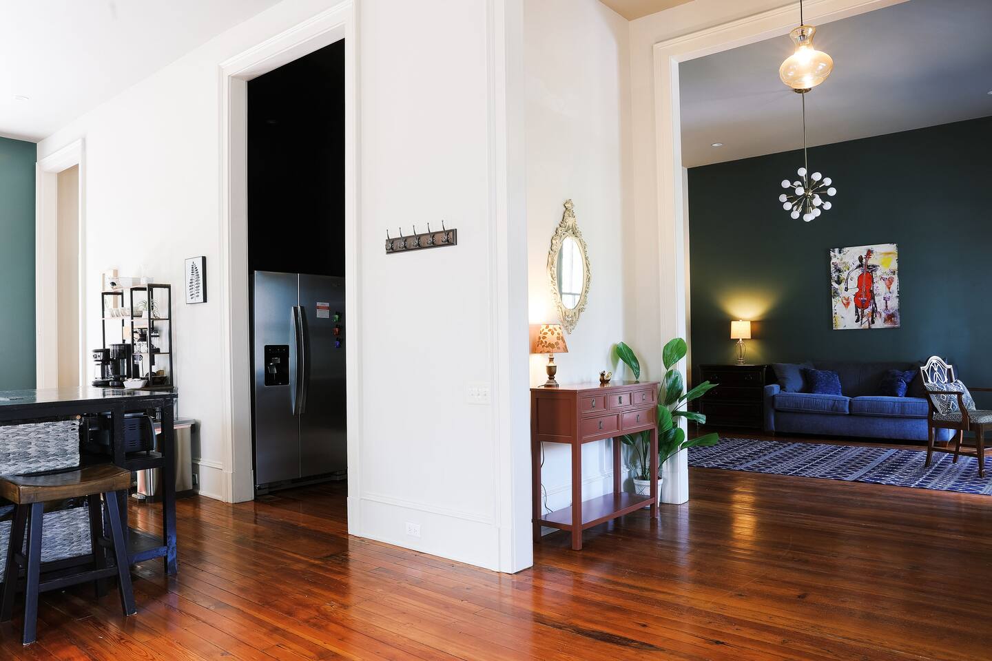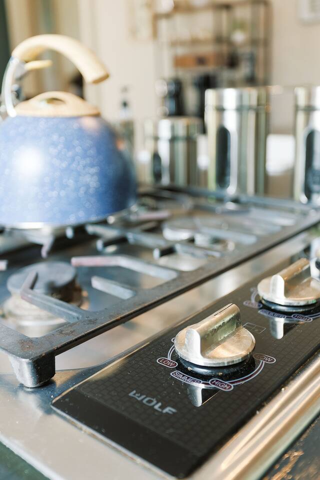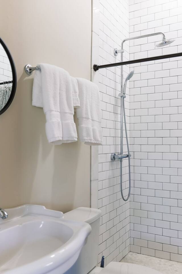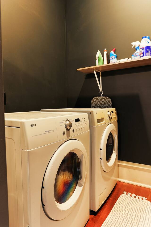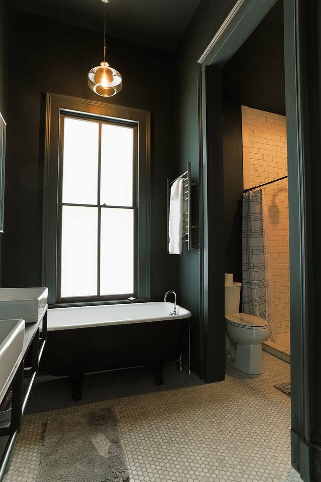 🏠 Single Family Home with over 1,800 square feet of living space. 🛌 Bedroom 1 = Luxury King Bed, Private Bath, Clawfoot Tub, Shower 🛏️ Bedroom 2 = Luxury Queen Bed, Private Bath, Shower 🛋️ Pull out Sofa Bed in the Living room that can sleep 2 adults (Blue Sofa in the photos) 🍽️ Kitchen featuring luxury Wolf Gas Range, Full Oven, Dishwasher, Refrigerator, Cookware, Microwave, Toaster Oven ☕ Coffee Bar featuring Keurig, Drip Coffee, Pour Over, French Press, K-Cups provided, Ground coffee provided, creamer, sugar, sweetener 🚗 Full Driveway with parking pad in the rear, street parking 24/7 🌳 Outdoor sitting space with a Weber BBQ Grill 🐕 Fully fenced in back yard (please supervise dogs at all times to prevent escape artists!)