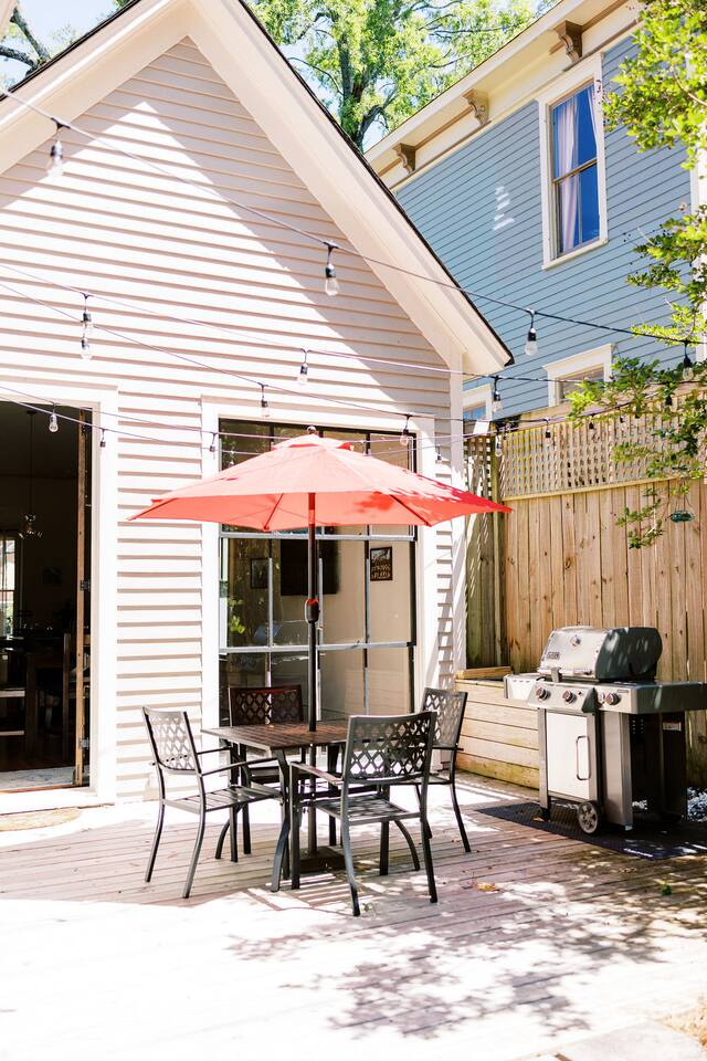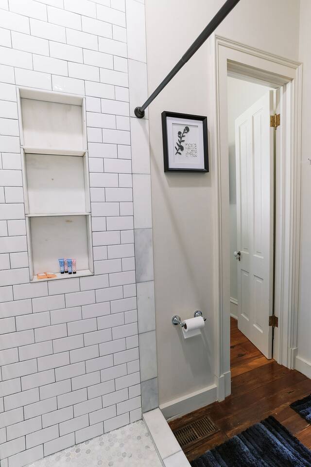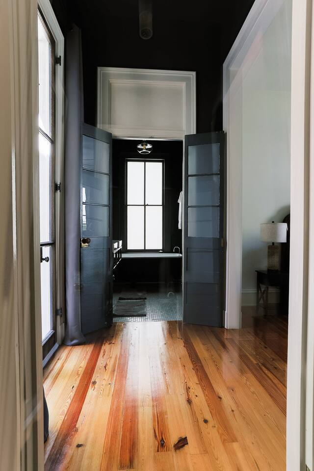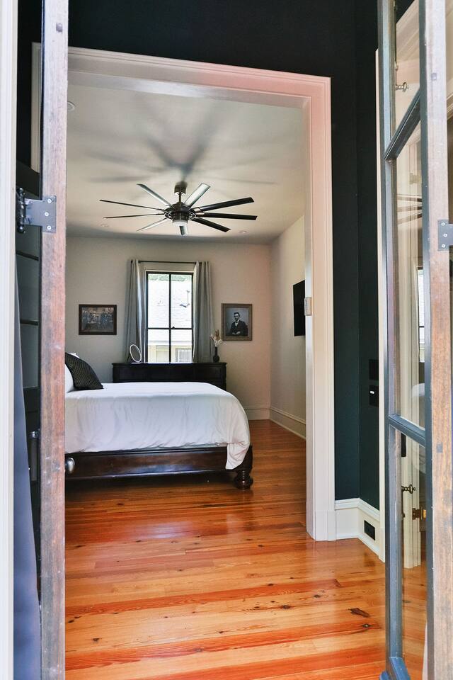 ⛲ Centrally located in the oldest neighborhood in Montgomery. ❇️ 12 foot ceilings, 150+ year old hardwood floors, gourmet kitchen appliances, luxury bathrooms, 14 inch hybrid mattresses, TVs in every room. 🚶♂️➡️ Lovely walkable neighborhood full of children's voices during the day and peaceful quiet at night. 🏙️ 5 minutes to downtown, MAFB, EJI, Legacy Museum, I65, I85, and MPAC.